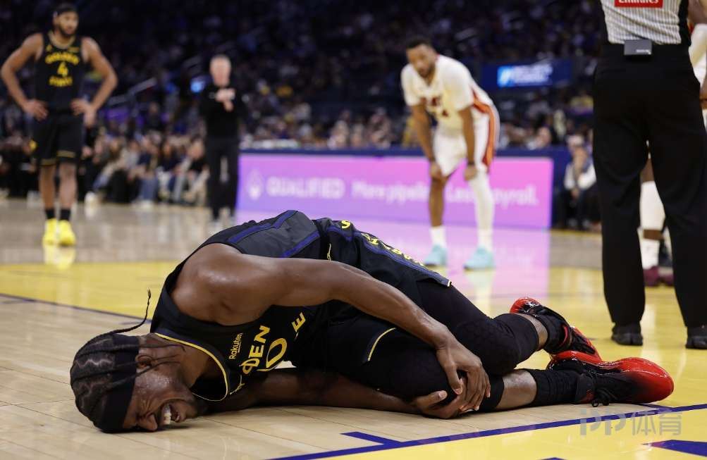 今日NBA常规赛,勇士在主场以135-112大胜热火。第三节还剩下7分多钟时,勇士进攻回合,吉米·巴特勒接应波杰姆斯基传球,在对抗中倒地不起,捂着右膝,表情痛苦,勇士立马喊出暂停,多人围上前查看巴特勒伤势。随后,巴特勒被队友希尔德和库明加架着回更衣室,其右脚不能受力,但离场时他还面带笑容。