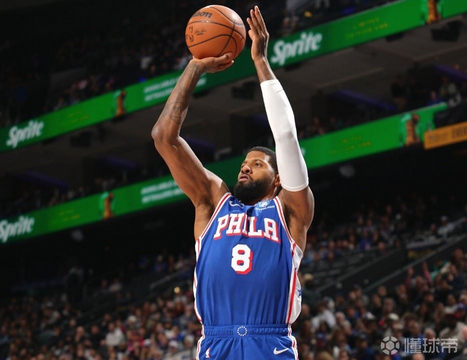 本场比赛,76人前锋乔治首发登场32分58秒,投篮21中11,三分球15中9,得到32分5板5助2断。