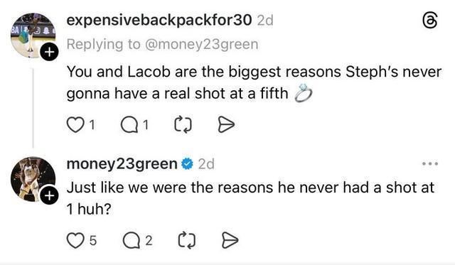 近日,勇士队内线德雷蒙德-格林在社媒上与一名球迷展开交流,后者抨击追梦和勇士老板拉科布是阻碍库里再夺总冠军的“阻碍”。
