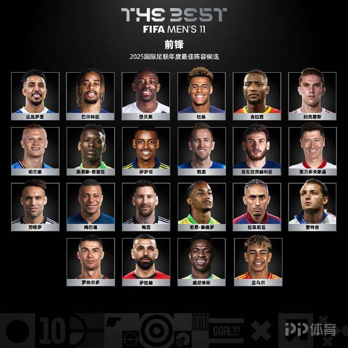 FIFA年度颁奖,官方公布了FIFA2025年度最佳阵容,前锋由登贝莱和亚马尔领衔,FIFA官方公布投票情况。