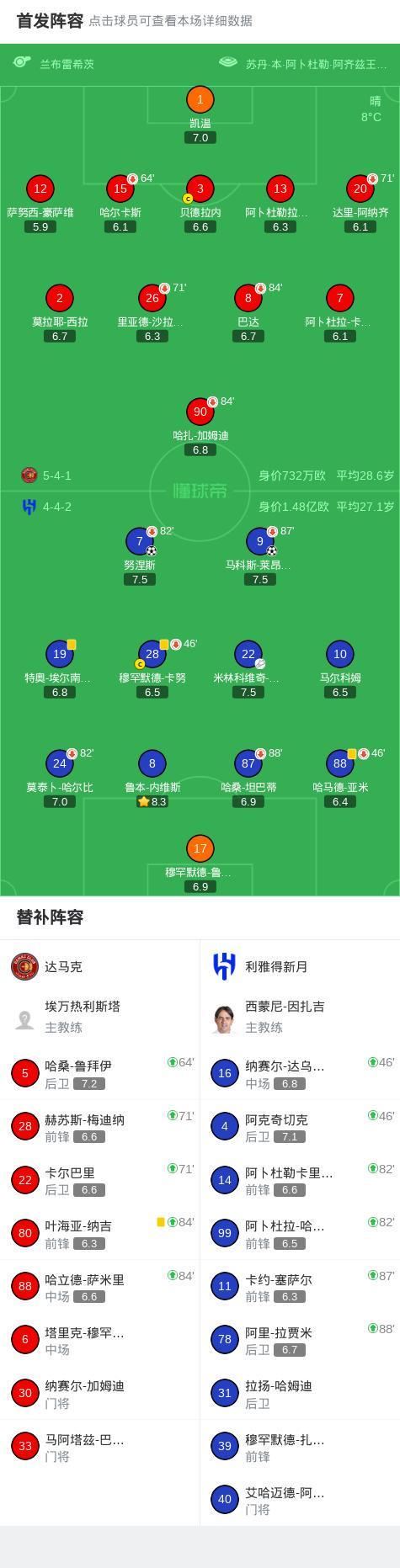 北京时间1月5日,沙特职业足球联赛第13轮展开争夺,达马克坐镇主场迎战利雅得新月。比赛中,利雅得新月率先发动攻势,米林科维奇-萨维奇送出精准助攻,努涅斯抓住机会打破僵局。下半场易边再战,马科斯-莱昂纳多延续球队良好势头,冷静施射建功,帮助球队扩大领先优势。此后双方均未能改写比分,最终全场结束,达马克0-2不敌利雅得新月。