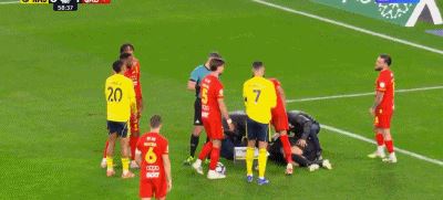 第63分钟,安热洛凶狠冲撞卡斯特尔斯,门将随后被担架运下场